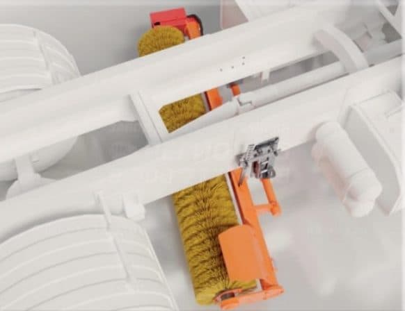 Устанавливается в межбазовое пространство машины и обеспечивает эффективную очистку дорог от мусора и пыли в летнее время, а в зимнее — от свежевыпавшего снега. Также может проводить качественную доочистку дорог после прохождения фронтального снегоуборочного отвала. Средняя щетка работает в плавающем режиме, оказывая оптимальное давление на поверхность дороги. Это минимизирует скорость износа щеточных элементов и обеспечивает высокую эффективность очистки полотна с преодолением препятствий.